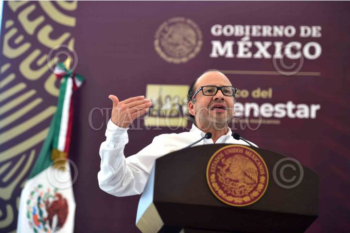 Victor Manuel Lamoyi, director general del Banco del Bienestar; Ariadna Montiel, secretaria del Bienestar, y Juan Pablo de Botton, subsecretario de egresos de la Secretaría de Hacienda y Crédito Público (SHCP), durante la inauguración de la sucursal del Banco de Bienestar en avenida Constituyentes 1001, y la Asamblea de Conformación de Comités de Programas para el Bienestar.
