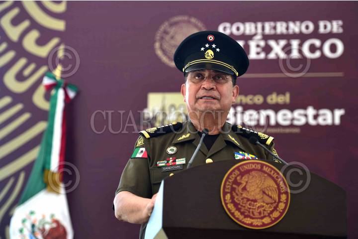 Luis Cresencio Sandoval, secretario de la Defensa Nacional, durante la inauguración del Banco del Bienestar en Villa Corzo.