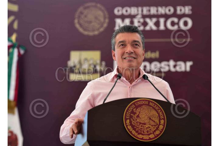 Rutilio Escandón Cadenas, gobernador de Chiapas, durante la inauguración del Banco del Bienestar en Villa Corzo.