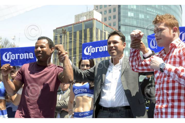 MÉXICO, D.F., 08MARZO2012.- Shane Mosley y Saúl Álvarez, fueron presentados, por Oscar de La Hoya, para su próxima pelea el próximo 5 de mayo en La Vegas, Nevada. El veterano estadounidense "Sugar" Shane Mosley tratará de arrebatarle el cetro Superwelter del Conejo Mundial de Boxeo. FOTO: GABINO ACEVEDO /CUARTOSCURO.COM