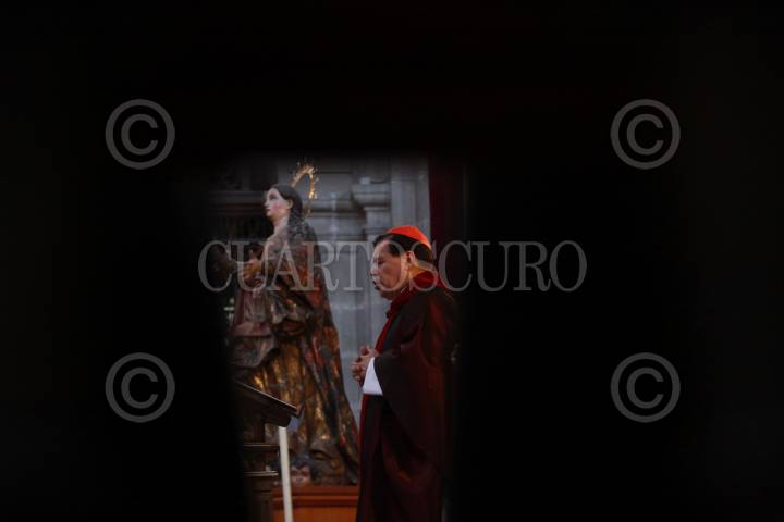 MÉXICO, D.F., 10ABRIL2009.- El cardenal Norberto Rivera Carrera oficio esta tarde la misa de la cruz y que trata sobre la Pasión y la Muerte de Jesucristo, por tal motivo en todas la iglesias las iglesias cubren a los cristos en señal de luto, todo esto se suma a las celebraciones por la semana santa FOTO: SÁSHENKA GUTIERREZ/CUARTOSCURO.COM