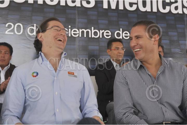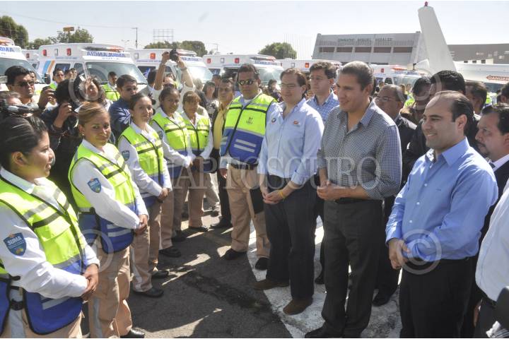 PUEBLA, PUEBLA, 20DICIEMBRE2011.- Salomón Chertorivsky, secretario de Salud, en compañía de Rafael Moreno Valle, gobernador del estado, pusieron en marcha el Sistema de Urgencias Médicas Avanzadas donde entregaron más de 50 ambulancias y una ambulancia aérea. FOTO: EDUARDO MORALES/CUARTOSCURO.COM