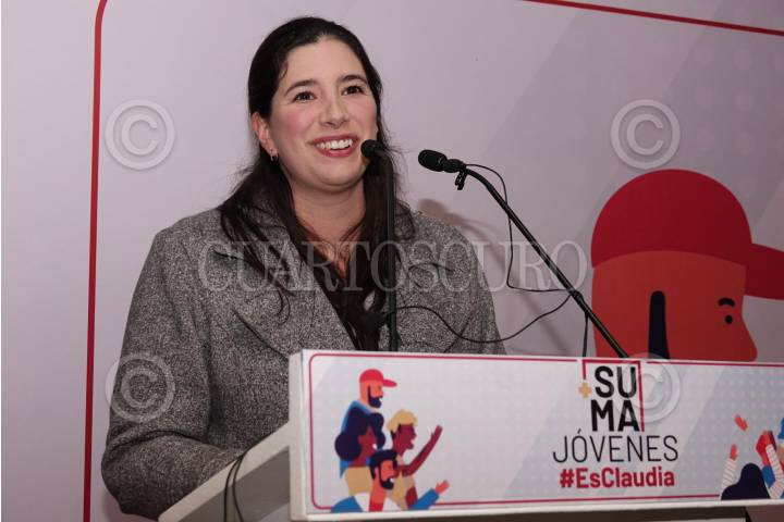 Paola Félix Díaz, Coordinadora de SUMA Mujeres Nacional, durante su participación en el encuentro de las juventudes de la organización "SUMA Construyendo Sociedad" en el que mostró apoyo a Claudia Sheinbaum, aspirante a la Coordinación Nacional en Defensa de la 4T
