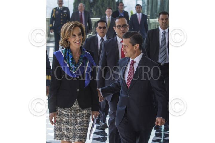 MÉXICO, D.F., 15OCTUBRE2013.- María Elena Morera, Presidenta Nacional de México Unido contra la Delincuencia junto a Enrique Peña Nieto, Presidente de la República durante el “Segundo Foro Nacional Sumemos Causas, por la Seguridad + Policías” que tuvo lugar en el Castillo de Chapultepec. FOTO: ENRIQUE ORDÓÑEZ /CUARTOSCURO.COM
