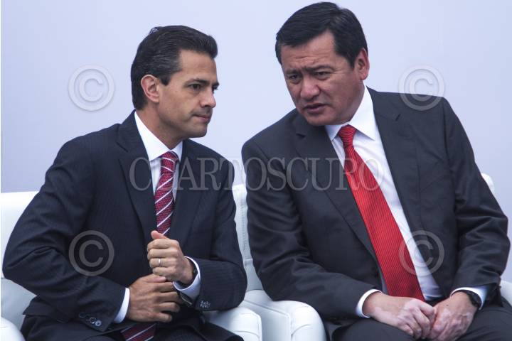 MÉXICO, D.F., 25SEPTIEMBRE2014.- Enrique Peña Nieto, presidente de México, y Miguel Ángel Osorio Chong, secretario de Gobernación, durante el Foro Nacional Sumemos Causas por la Seguridad, Ciudadanos + Policías, que realizó la organización Causa en Común. FOTO: ISAAC ESQUIVEL /CUARTOSCURO.COM