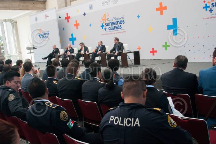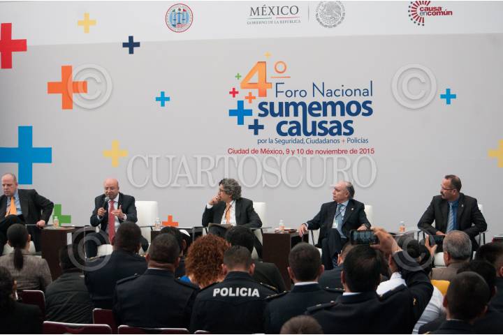 MEXICO, D.F., 10NOVIEMBRE2015.- Renato Sales Heredia, Comisionado Nacional de Seguridad; José Luis Calderón Arózqueta, Titular del Centro Nacional de Certificación y Acreditación; Alejandro Hope Pinson, Especialista en Seguridad y Luis Gabriel Salazar Vázquez, Director de Seguridad Pública del Municipio de Pedro Escobedo Querétaro, participaron como ponentes en el segundo día del 4o Foro Nacional Sumemos Causas por la Seguridad, Ciudadanos + Policía. FOTO: DIEGO SIMÓN SÁNCHEZ /CUARTOSCURO.COM