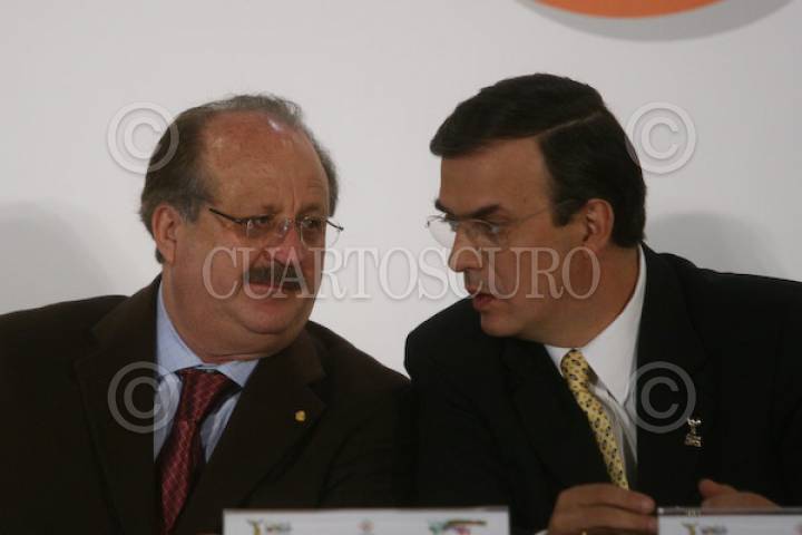 MÉXICO, D.F., 04NOVIEMBRE2008.- El Senador Graco Ramirez Ramírez, Marcelo Ebrard Casaubón jefe de Gobierno del Distrito Federal, durante la entrega becas a mil estudiantes de Educación Superior. FOTO: SÁSHENKA GUTIERREZ/CUARTOSCURO.COM