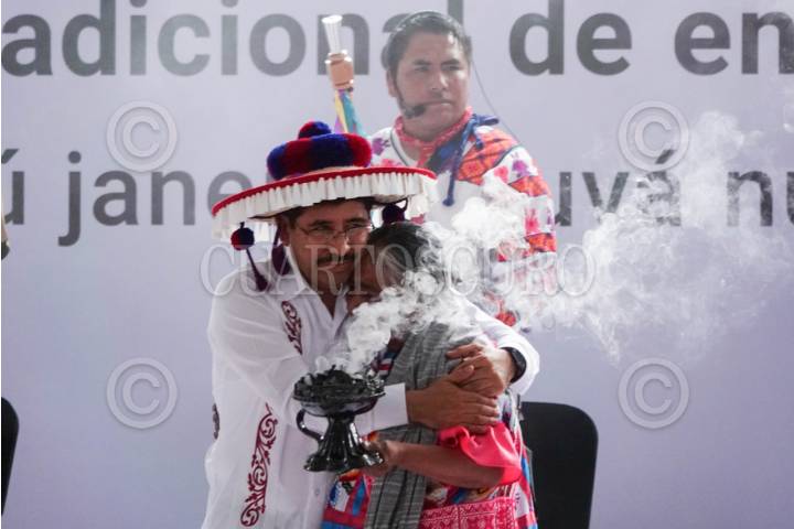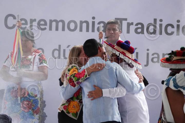 CIUDAD DE MÉXICO, 01SEPTIEMBRE2025.- El nuevo ministro presidente de la Suprema Corte de Justicia de la Nación, Hugo Aguilar Ortiz, se abraza con las ministra Loretta Ortiz Ahlf y Lenia Batres, así como con el ministro Giovanni Azael Figueroa durante Ceremonia de entrega de bastones de mando y de servicio a las ministras y ministros electos de la Suprema Corte de Justicia de la Nación (SCJN). FOTO: GALO CAÑAS/CUARTOSCURO.COM