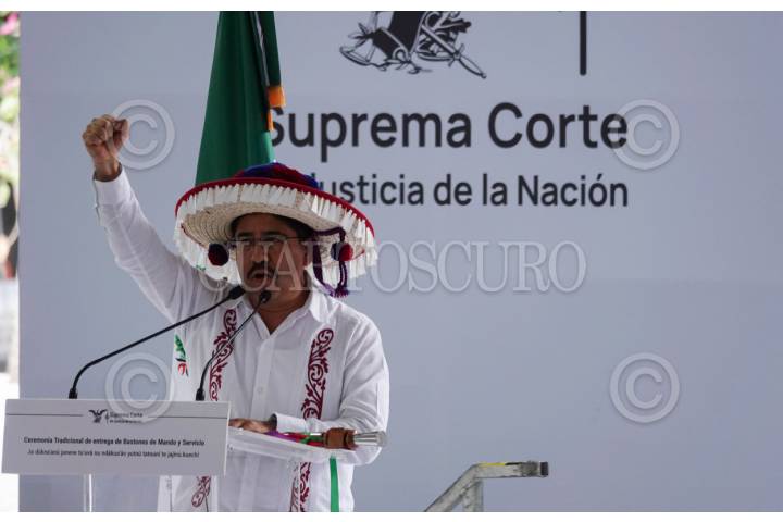 CIUDAD DE MÉXICO, 01SEPTIEMBRE2025.- El nuevo ministro presidente de la Suprema Corte de Justicia de la Nación, Hugo Aguilar Ortiz, durante Ceremonia de entrega de bastones de mando y de servicio a las ministras y ministros electos de la Suprema Corte de Justicia de la Nación (SCJN). FOTO: GALO CAÑAS/CUARTOSCURO.COM