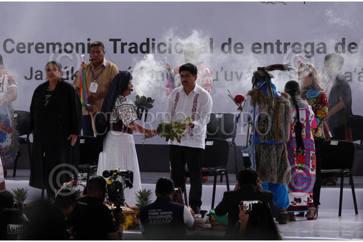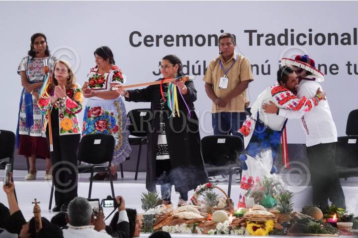 CIUDAD DE MÉXICO, 01SEPTIEMBRE2025.- Las ministras Loretta Ortiz Ahlf, Lenia Batres y el nuevo ministro presidente de la Suprema Corte de Justicia de la Nación, Hugo Aguilar Ortiz, durante Ceremonia de entrega de bastones de mando y de servicio a las ministras y ministros electos de la Suprema Corte de Justicia de la Nación (SCJN). FOTO: GALO CAÑAS/CUARTOSCURO.COM