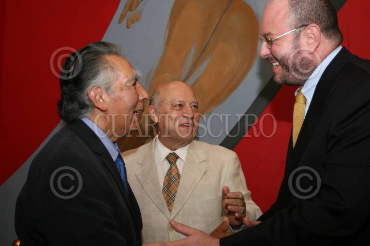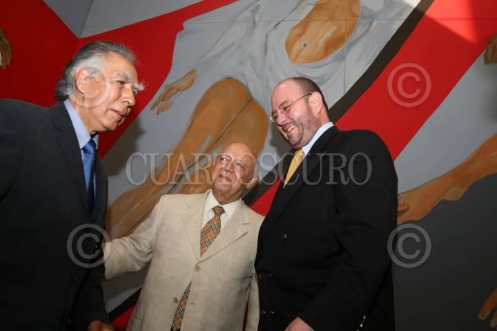 MÉXICO D.F., 15JULIO2008.-En las instalaciones de la Suprema Corte de Justicia de la Nación (SCJN), en ceremonia solemne se realizo la inauguración del nuevo mural que lleva como titulo “La Justicia Supremo Poder” del muralista Leopoldo Flores, quien asistió a la inauguración.En la imagen es acompañado por el ministro Guillermo Ortiz Mayagoitia y por Sergio Vela presidente de CONACULTA. FOTO: GUILLERMO PEREA/CUARTOSCURO.COM