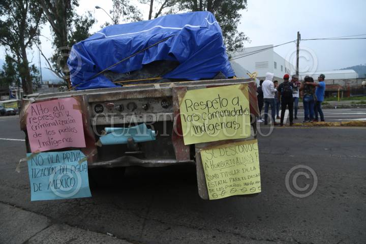 URUAPAN, MICHOACÁN, 28JUNIO2018. Comuneros de Caltzontzin que pertenecen al Concejo Supremo Indígena de Michoacán (CSIM), realizo la toma de carreteras y manifestaciones en las inmediaciones de la Meseta Purépecha. Los objetivos de las movilizaciones son para exigir un alto a la criminalización de las comunidades originarias del estado de Michoacán y la no instalación de casillas electorales el próximo 1 de julio en las comunidades de Santa Fe de la Laguna, San Felipe de los Herreros, Aranza, Zopoco, San Benito, Sevina, Cocucho y Nahuatzen. FOTO: JUAN JOSÉ ESTRADA SERAFÍN / CUARTOSCURO.COM