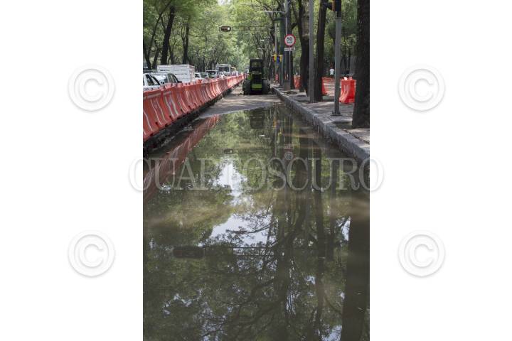 CIUDADE DE MÉXICO, 25MAYO2017.- Las obras de construcción de la Línea 7 del Metrobús se han suspendido temporalmente, desde la Estela de Luz hasta la Fuente de Petróleos, por descontento de los vecinos, algunos han solicitado la cancelación del proyecto. Autoridades capitalinas analizarán si es factible modificar el trazo de la ruta para reanudar los trabajos en la zona. FOTO: SELENE PACHECO /CUARTOSCURO.COM