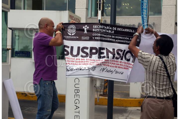 CUERNAVACA, MORELOS, 17JULIO2018.- Personal de la Secretaria de Desarrollo Sustentable del municipio suspende un estacionamiento ubicado dentro de una plaza comercial, pues no cuenta con los permisos para dar este servicio. FOTO: MARGARITO PÉREZ RETANA /CUARTOSCURO.COM