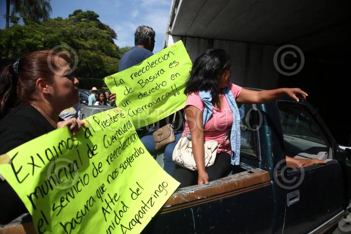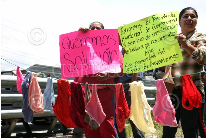 CUERNAVACA, MORELOS, 25AGOSTO2019. Habitantes de la colonia Ejidos de Acapantzingo bloquean el paso exprés, demandan que el gobierno municipal les brinde el servicio de recolección de basura que el presidente municipal, Francisco Villalobos, suspendió desde hace dos meses por diferencias con los ejidatarios. Ninguna autoridad se acercó a dialogar con los quejosos. FOTO: MARGARITO PÉREZ RETANA /CUARTOSCURO.COM