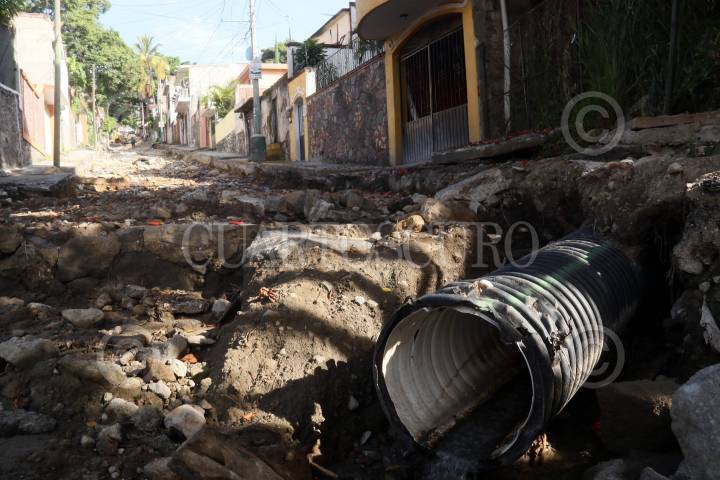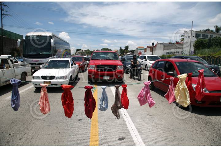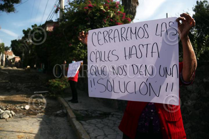 Vecinos de las colonias Alta Vista y Sacatierra bloquean la calle principal en demanda que el gobierno del estado termine la obra de introducción del drenaje, que inicio hace dos semanas y luego suspendio.