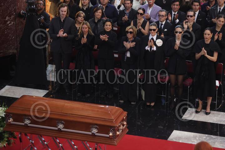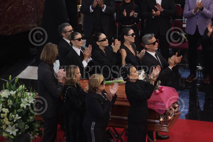 CIUDAD DE MÉXICO, 30NOVIEMBRE2024. Alejandra Guzmán, Camila Valero, Michelle Salas, Giordana Guzmán, Stephanie Salas, Sylvia Pasquel y Efigenia Ramos, las mujeres que acompañaron a la primera actriz Silvia Pinal en su vida se despiden de ella durante el homenaje en el vestíbulo del Palacio de Bellas Artes, tras su fallecimiento el pasado 28 de noviembre. FOTO: EDGAR NEGRETE LIRA/CUARTOSCURO.COM
