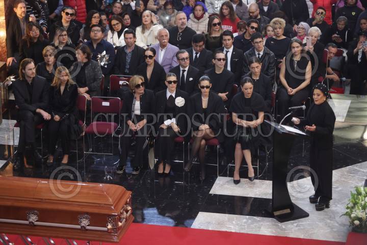 CIUDAD DE MÉXICO, 30NOVIEMBRE2024. Giordana Guzmán, Alejandra Guzmán, Sylvia Pasquel y Michelle Salas durante el homenaje a la primera actriz Silvia Pinal en el vestíbulo del Palacio de Bellas Artes tras su fallecimiento el pasado 28 de noviembre. FOTO: EDGAR NEGRETE LIRA/CUARTOSCURO.COM