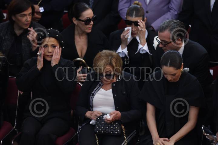 CIUDAD DE MÉXICO, 30NOVIEMBRE2024. Alejandra Guzmán, Stephanie Salas, Sylvia Pasquel y Michelle Salas lloran durante el homenaje a la primera actriz Silvia Pinal en el vestíbulo del Palacio de Bellas Artes tras su fallecimiento el pasado 28 de noviembre. FOTO: EDGAR NEGRETE LIRA/CUARTOSCURO.COM