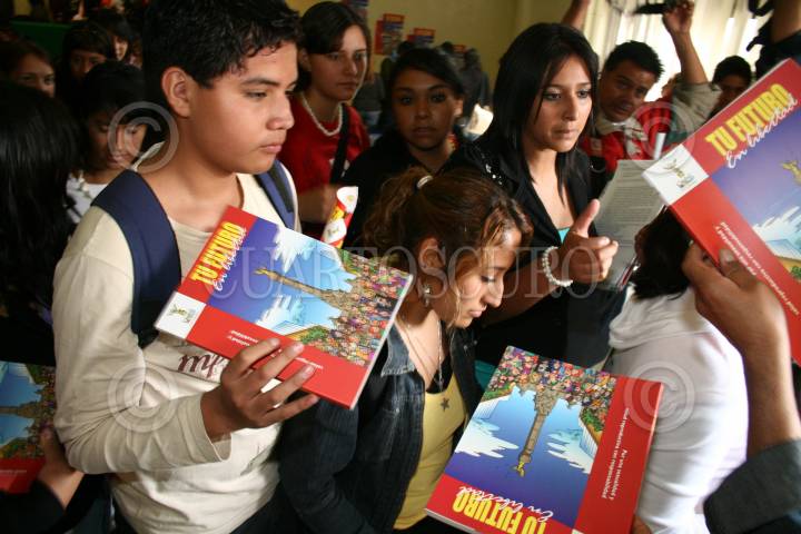 MÉXICO D.F., 28AGOSTO2008.- Alumnos de nivel bachillerato recibe el libro de sexualidad "Tu Futuro en libertad" . FOTO: SÁSHENKA GUTIÉRREZ/CUARTOSCURO.COM