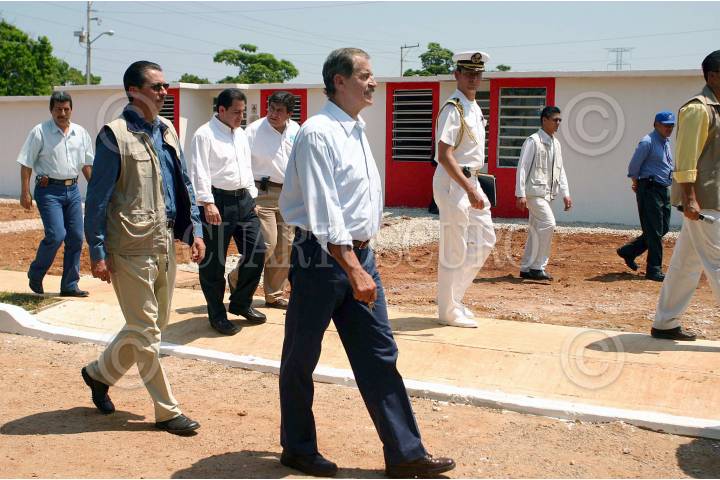 VILLAHERMOSA, TABASCO 23SEPTIEMBRE2005.- El presidente Vicente Fox Quesada llegó fuertemente escoltado al acto denominado "Tu Casa" donde entregó 480 viviendas con una inversión de 41 millones de pesos, para familias que ganen menos de tres salarios minimos. FOTO: Marco Polo Guzma/CUARTOSCURO.COM
