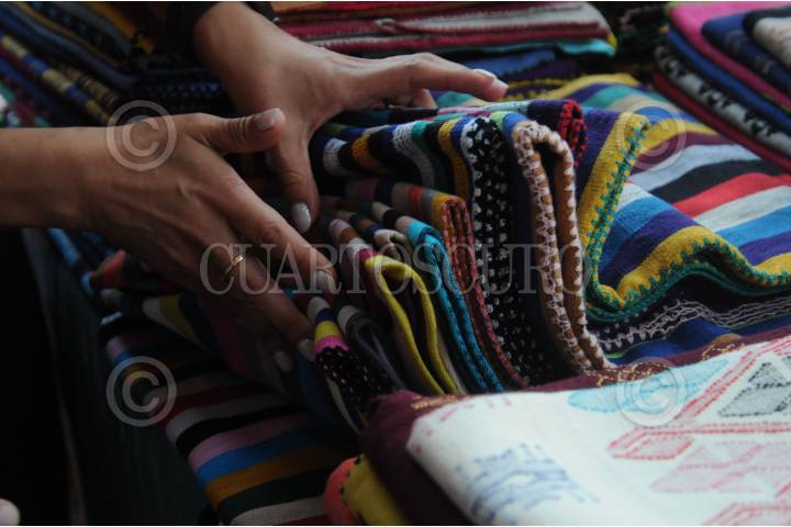 CIUDAD DE MÉXICO, 12SEPTIEMBRE2024.- Una persona observa los rebozos que se encuentran en venta en la feria artesanal" Tapame con tu Rebozo". FOTO: DANIEL AUGUSTO/ CUARTOSCURO.COM