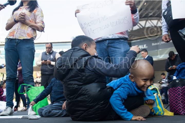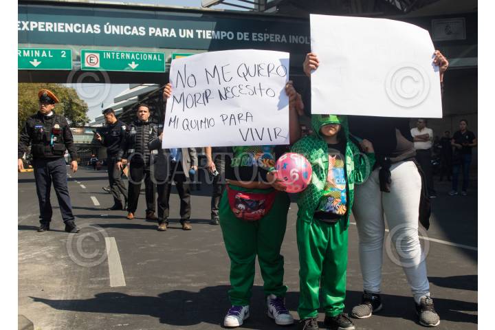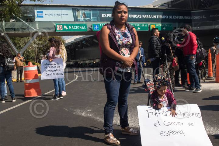 Padres cuyos hijos están enfermos de cáncer decidieron bloquear la T1 para exigir que el gobierno federal resuelva el desabasto de medicinas que están padeciendo en el Hospital Infantil de México