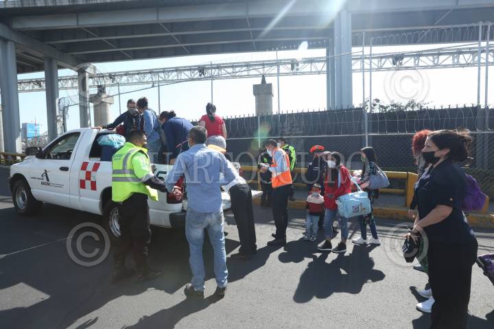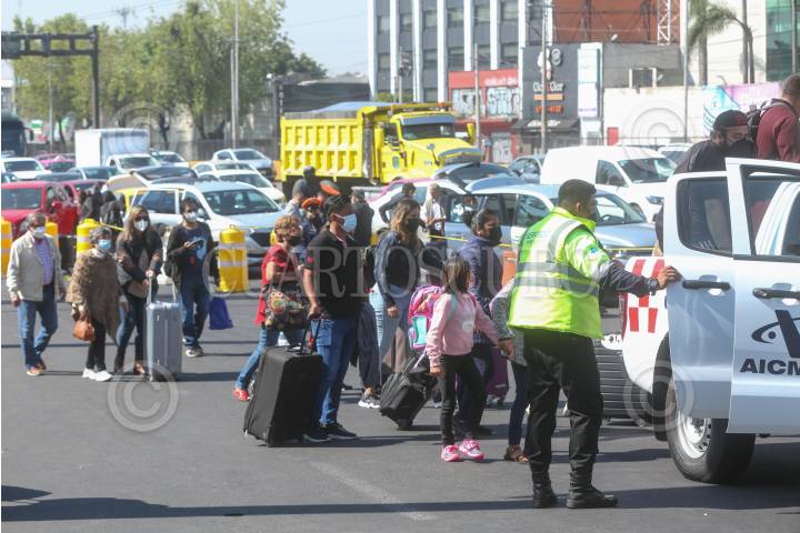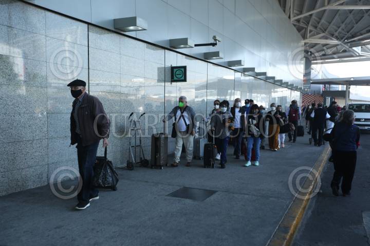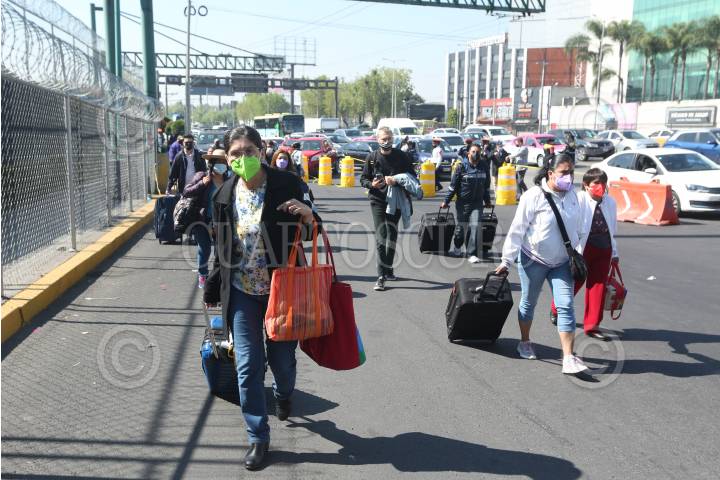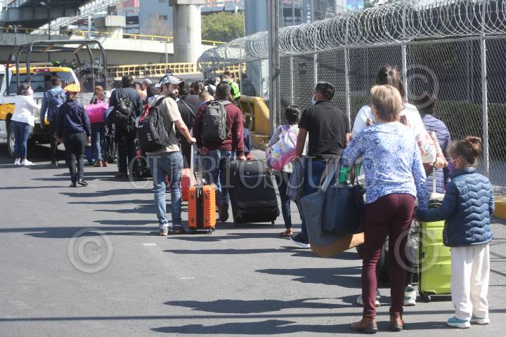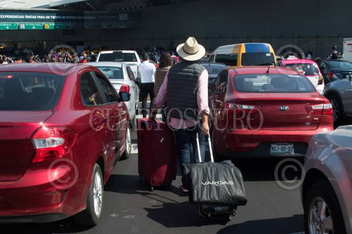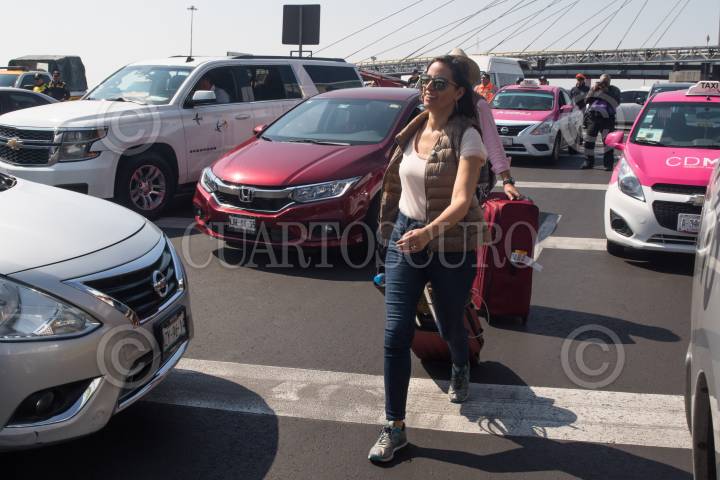 Turistas tuvieron que llegar caminando o apoyados por camionetas, luego de que la entrada principal de la T1 fuera bloqueada por padres de familias que denuncian desabasto de medicinas en el Hospital Infantil de México