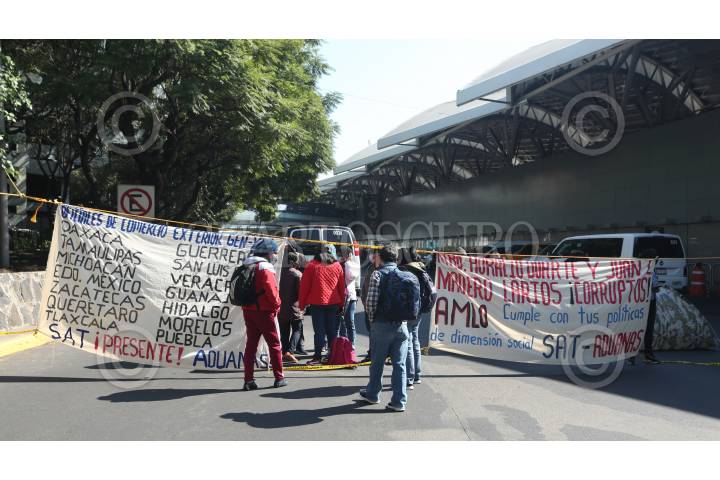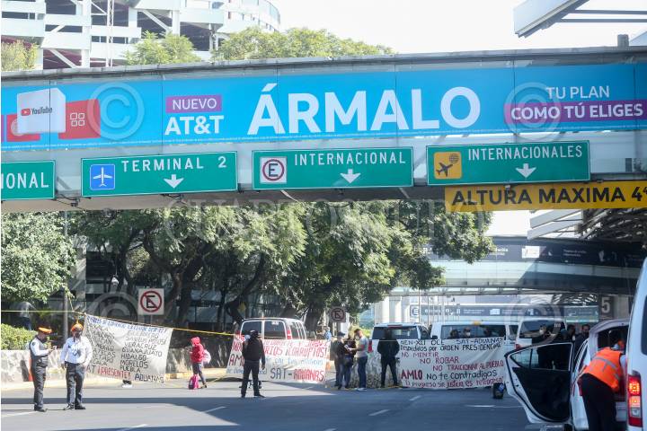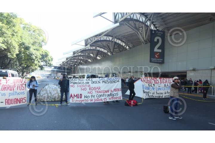 Trabajadores aduanales que denuncian que fueron despedidos injustamente bloquearon la Terminal 1 del AICM.