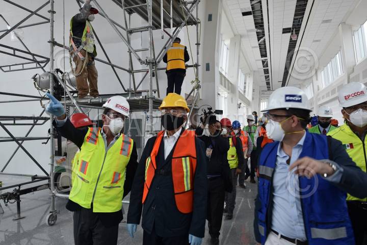 Javier Jiménez Espriú, secretario de Comunicaciones y Transportes, recorrió las obras de ampliación de la T2, las cuales están a punto de concluir.