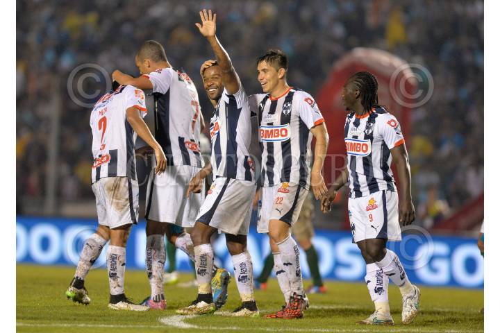 MONTERREY, NUEVO LEÓN, 21MARZO2015.- Jugadores del equipo de los Rayados del Monterrey, celebran el gol contra el equipo de los Esmeraldas del León, en el estadio Tecnológico, partido correspondiente a la jornada 11 de la Liga MX. FOTO: CUARTOSCURO.COM