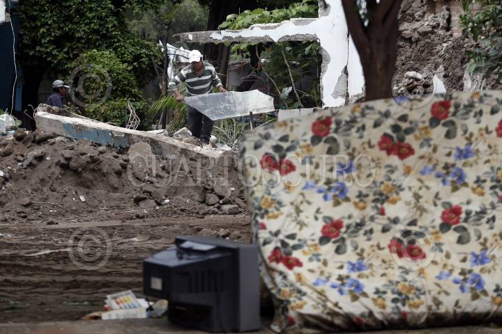TEHUITZINGO, PUEBLA, 23SEPTIEMBRE2017.- Autoridades y voluntarios realizan labor de remoción de escombros, limpieza y demolición de viviendas dañadas en el municipio de Tehuitzingo, tras el sismo de 7.1 grados del pasado 19 de septiembre. FOTO: HILDA RÍOS /CUARTOSCURO.COM