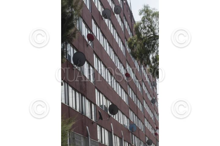 MEXICO, D.F, 23AGOSTO2014.-Antenas de T.V. de paga en los departamentos de un edificio habitacional de Tlatelolco. FOTO: DAVID POLO /CUARTOSCURO.COM