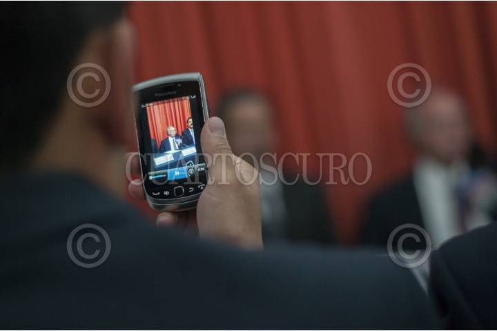 MÉXICO, D.F., 29OCTUBRE2014.- Contraluz de un camarógrafo de prensa que realiza su trabajo durante el 1er Encuentro de Economía Social en México. FOTO: DIEGO SIMÓN SÁNCHEZ /CUARTOSCURO.COM