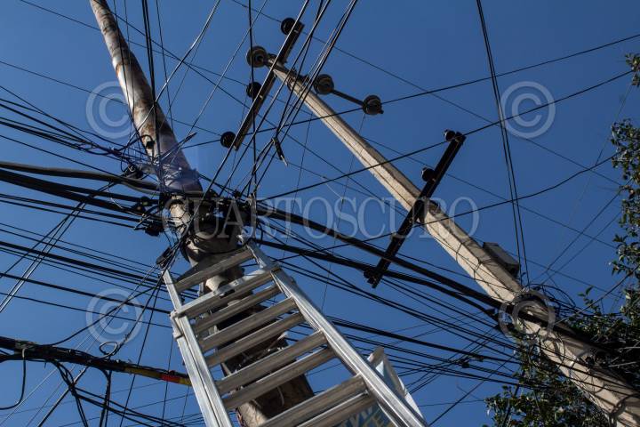 MEXICO, D.F., 07FEBRERO2015.- Una enorme red de cables atados a postes de todas las banquetas proven de electricidad y telecomunicaciones a la mayor parte de la Ciudad de México. FOTO: DAVID POLO /CUARTOSCURO.COM