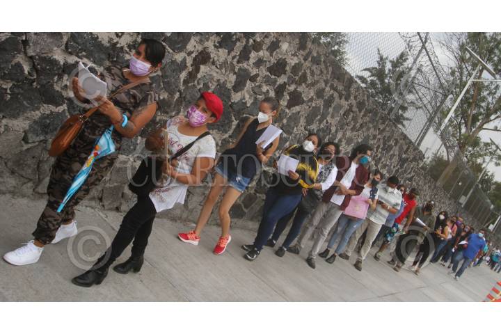 Adultos de 30 a 39 años realizaron fila para la aplicación de la primera dosis de la vacuna Astra Zeneca contra Covid-19 en el Telecom, alcaldía Iztapalapa