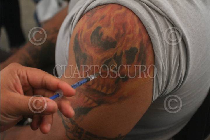 Un adulto recibió su primera dosis de la vacuna Astra Zeneca contra Covid-19 en el Telecom, alcaldía Iztapalapa