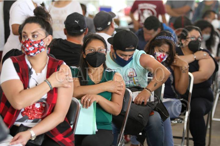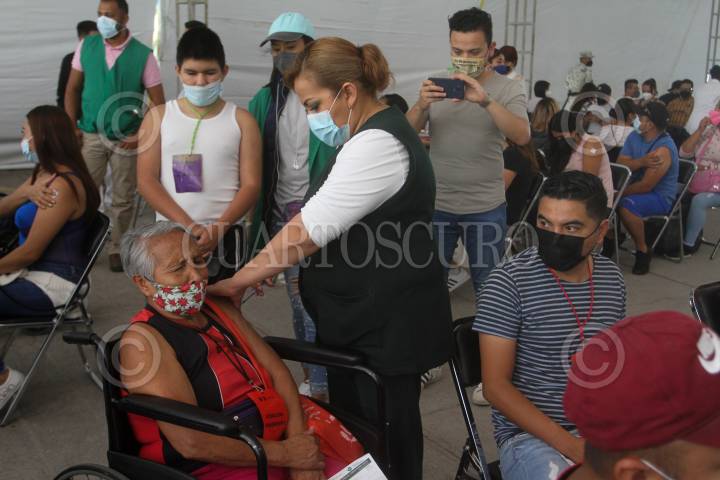 Adultos de 30 a 39 años acudieron a recibir la primera aplicación de la primera dosis de la vacuna Astra Zeneca contra Covid-19 en el Telecom, alcaldía Iztapalapa