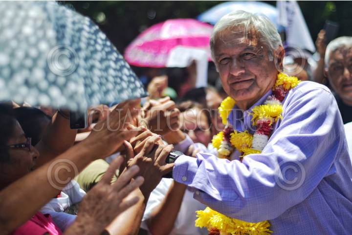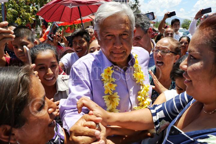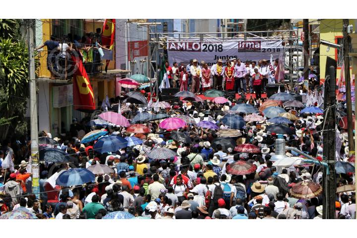 TEOTITLÁN, OAXACA, 11MAYO2018.- Andrés Manuel López Obrador, candidato de Morena a la presidencia de la república, sostuvo un encuentro con miles de simpatizantes a su movimiento en la plaza principal de la cabecera municipal en donde dio a conocer sus propuesta de gobierno. FOTO: MISAEL VALTIERRA / CUARTOSCURO.COM
