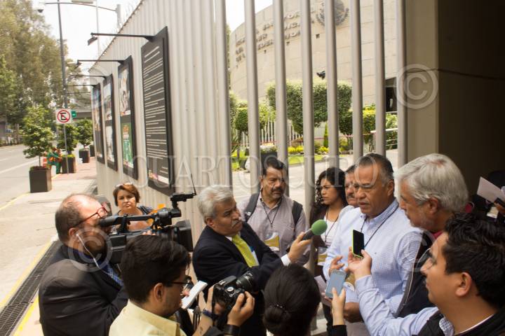 CIUDAD DE MÉXICO, 18JULIO2017.- Los perredistas Carlos Sotelo y José Narro Céspedes acudieron a las instalaciones del Tribunal Electoral del Poder Judicial de la Federación (TEPJF), para exponer que se expulsó a el militante Rey Morales, por haberse sumado de al llamado de Morena por la unidad electoral para el 2018, mientras que cuando su presidenta Alejandra Barrales ofreció una conferencia de prensa con el dirigente de PAN, en el cual anunciaron que trabajaría en un proyecto electoral para las elecciones presidenciales, no ameritó ninguna sanción en su contra. FOTO: MARTHA ESQUIVEL /CUARTOSCURO.COM