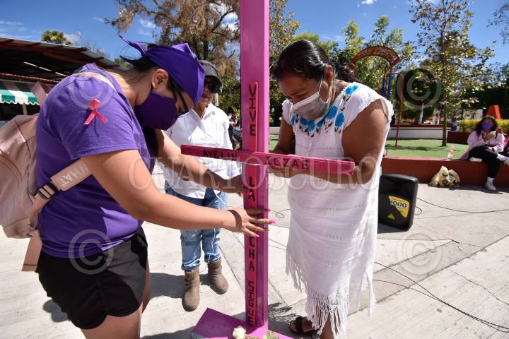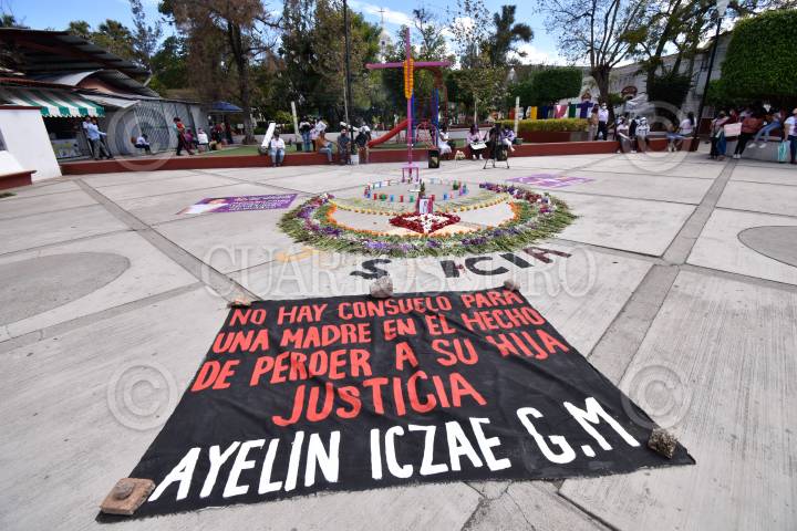 Colectivos que reivindican la defensa de los derechos de la mujer, así como familiares de víctimas de desaparición forzada, colocaron una cruz en la Plaza Cívica del municipio de Tixtla en honor y exigencia de justicia por el caso de Ayelin Iczae Gutiérrez Marcelo, quien fuera desaparecida y privada de la vida en octubre de 2020.