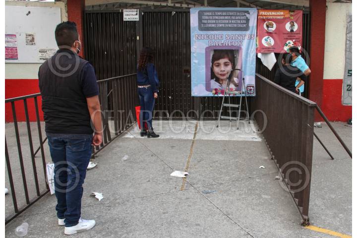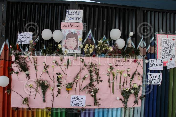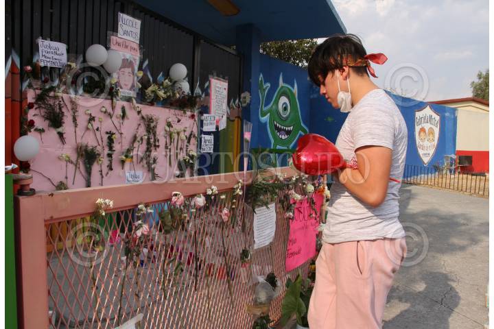 Altar en honor a la niña Nicole Santos a las afueras de se escuela.