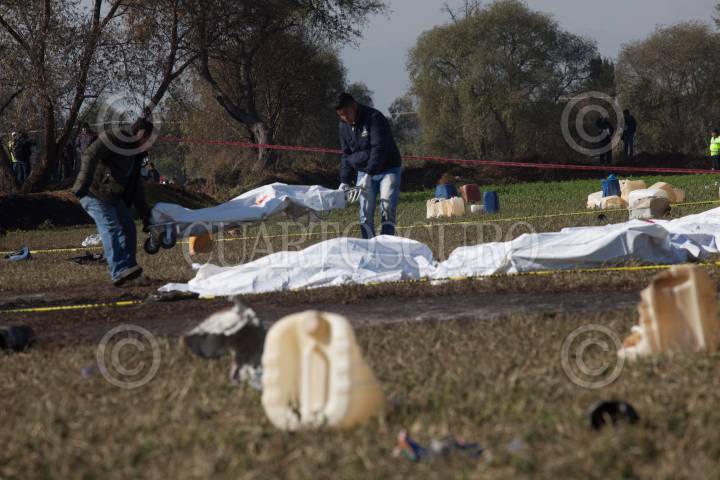 TLAHUELILPAN, HIDALGO, 19ENERO2019.- Peritos y militares trabajan en la zona de la comunidad de San Primitivo, donde el día viernes se reportó una explosión en una toma clandestina de combustible, hasta el momento se reportan 66 personas muertas y más de 70 lesionados. FOTO: JUAN PABLO ZAMORA /CUARTOSCURO.COM