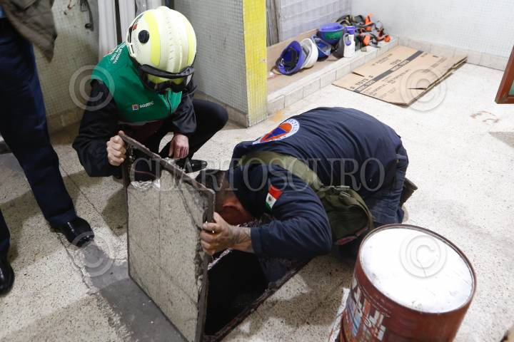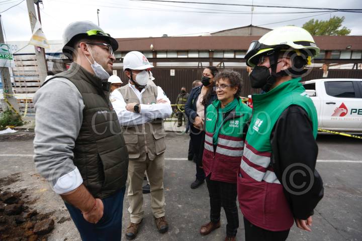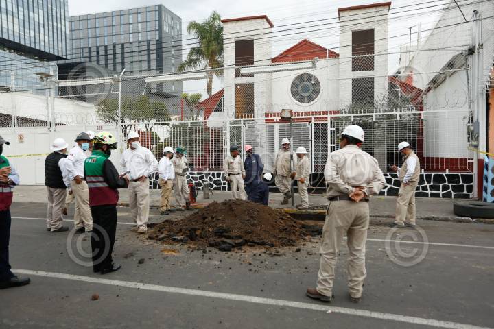 CIUDAD DE MÉXICO, 24JULIO2024. - Trabajadores de Pemex limpian una de las coladeras donde se detectó la presencia de hidrocarburo. FOTO: DANIEL AUGUSTO /CUARTOSCURO.COM