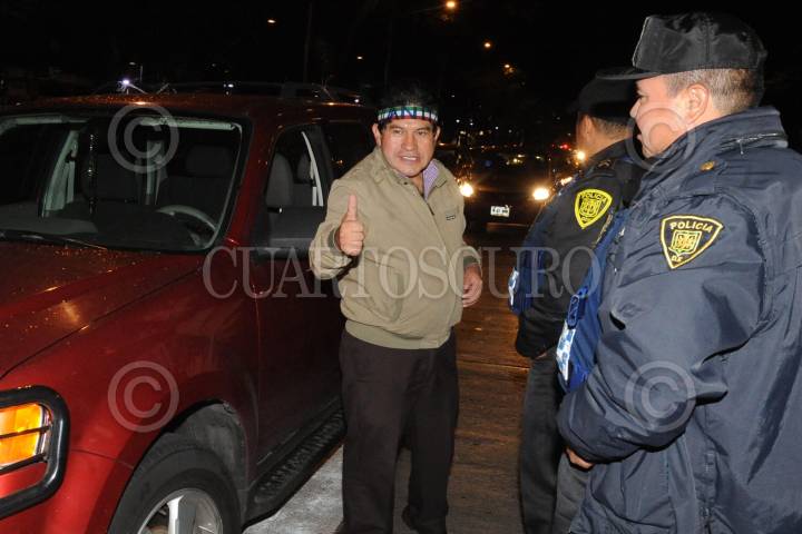 MÉXICO, D.F., 24JULIO2015.- Rafael Acosta, ex delegado de Iztapalapa y mejor conocido como “Juanito”, decidió bajar a saludar viejos amigos policías sobre avenida Paseo de la Reforma a la altura de La Palma colonia Cuauhtémoc. En donde permaneció por aproximadamente media hora en carriles centrales, aprovechando para saludar a civiles que pasaron por el lugar. Informo a medios de comunicación, que actualmente espera la resolución del Tribunal Federal Electoral, por la impugna del 14 Distrito en el que contendió por el partido humanista. FOTO: LUIS CARBAYO /CUARTOSCURO.COM