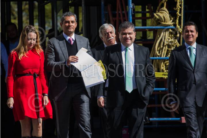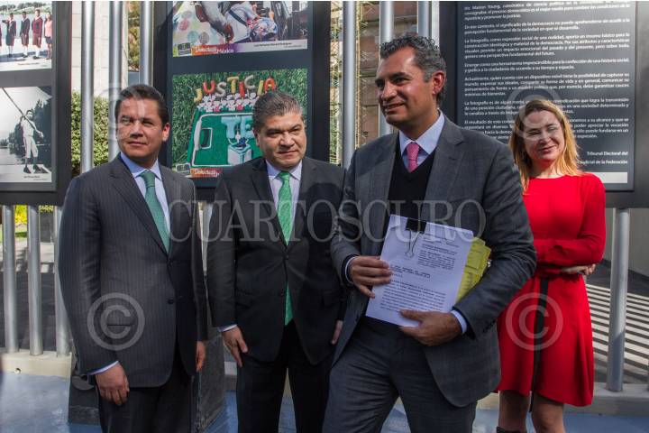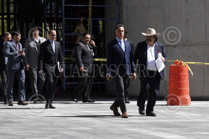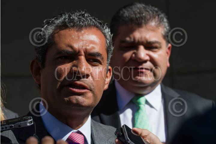 CIUDAD DE MÉXICO, 13NOVIEMBRE2017.- Enrique Ochoa Reza, presidente nacional del PRI, y Miguel Riquelme, candidato a gobernador de Coahuila, acudieron al Tribunal Electoral del Poder Judicial de la Federación para discutir la posible anulación de la elección en dicho estado. FOTO: ISAAC ESQUIVEL /CUARTOSCURO.COM
