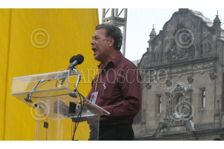 MÈXICO,D.F. 6AGOSTO2006.- AndrèsManuel Lòpez Obrador encabezò una asamblea informativa en el Zòcalo capitalino donde combocò a reunirse en el TRIFE para concientizar a losmagistrados. Alberto Anaya, Dirijente del PT. FOTO: Paola Hidalgo/CUARTOSCURO.COM