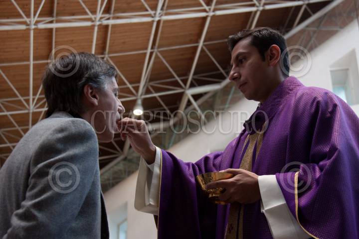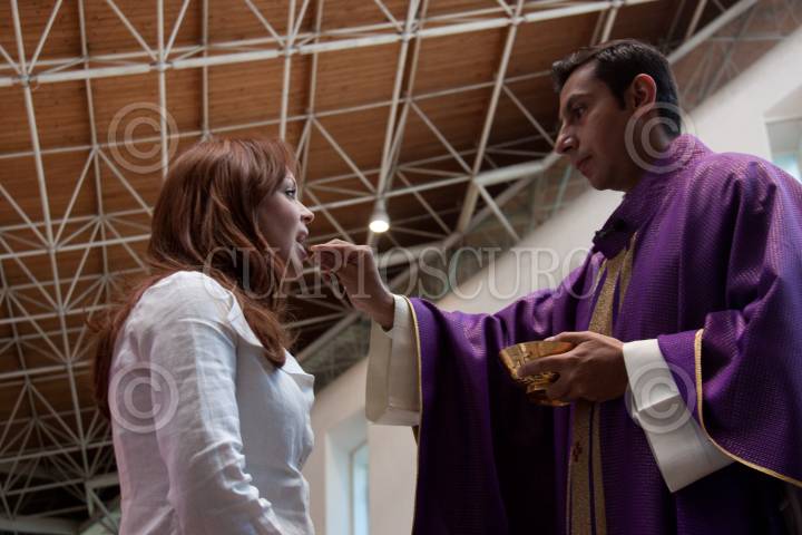 MÉXICO, D.F., 16MARZO2011.- El elenco de la telenovela Emperatriz acudió a la misa de inicio de grabaciones realizada en la parroquia La Esperanza de María en la Resurrección del Señor. La telenovela será transmitida por la televisora T.V. Azteca. Rafael Sánchez navarro al momento de comulgar. FOTO: IVÁN STEPHENS/CUARTOSCURO.COM