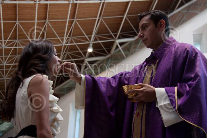 MÉXICO, D.F., 16MARZO2011.- El elenco de la telenovela Emperatriz acudió a la misa de inicio de grabaciones realizada en la parroquia La Esperanza de María en la Resurrección del Señor. La telenovela será transmitida por la televisora T.V. Azteca. Gabriela Spanic al momento de comulgar. FOTO: IVÁN STEPHENS/CUARTOSCURO.COM