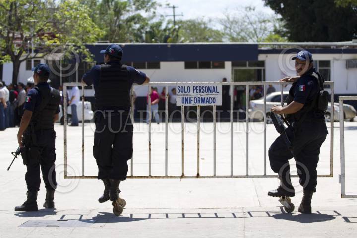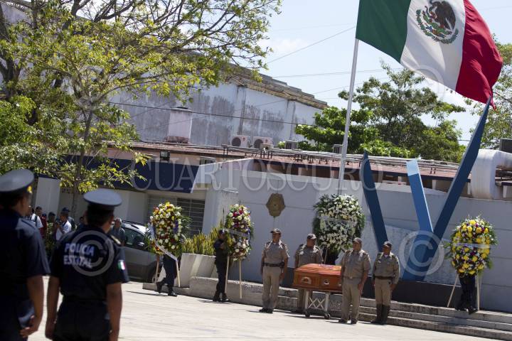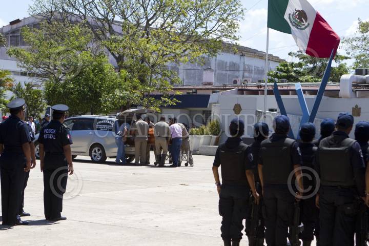 VILLAHERMOSA, TABASCO, 16MARZO2012.- Elementos uniformados de la Secretaria de Seguridad Pública local rindieron homenaje de cuerpo presente al policía Roque Cordova García conocido en el argot policial como "Gama ocho". El occiso pierde la vida la madrugada de hoy al enfrentarse con unos delincuentes que asaltaban en el motel La Majagua ubicado sobre la carretera federal Villahermosa-Teapa a la altura de la villa Parrilla. FOTO: MARCO POLO GUZMÁN HERNÁNDEZ/CUARTOSCURO.COM